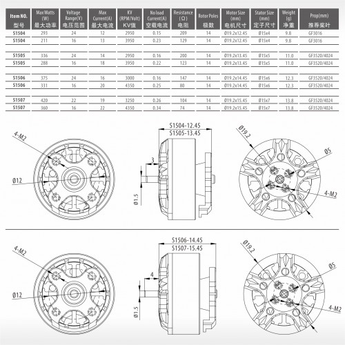SURPASS HOBBY Bat S1504 14-полюсный ДВИГАТЕЛЬ FPV, вал 1,5 мм, провод 24AWG, длина 50 мм.