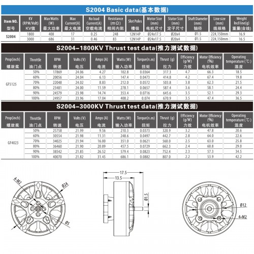 Бесщеточный двигатель с однониточной обмоткой SURPASS HOBBY Bat S2004, 14-полюсный выходной вал ¢1,5 * 4 мм, длина силиконового провода 22AWG 150 мм.